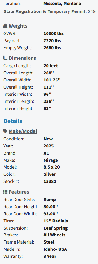 For availability, pricing, or a custom quote, contact our expert trailer team at 4O6-251-1322 or email info@westernstatestrailer.com Please stop by our large facility—we’re ready to help.