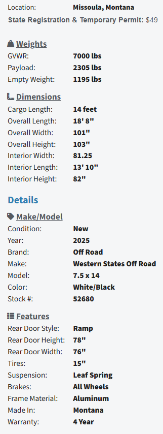 For availability, pricing, or a custom quote, contact our expert trailer team at 4O6-251-1322 or email info@westernstatestrailer.com Please stop by our large facility—we’re ready to help.