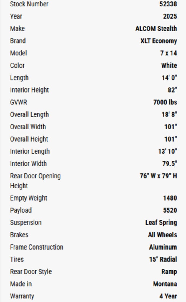 As the region’s longest-running and largest aluminum trailer outlet, Western States Trailer Missoula is proud to introduce the Montana-made XLT Pro by Stealth—our most budget-conscious aluminum trailer yet. Built on Stealth’s proven platform, the new XLT Pro model delivers essential features at a more affordable price point. Standard equipment includes a reduced box height, compact V-nose design, slimline lighting, and black mod wheels—practical upgrades that offer real value.