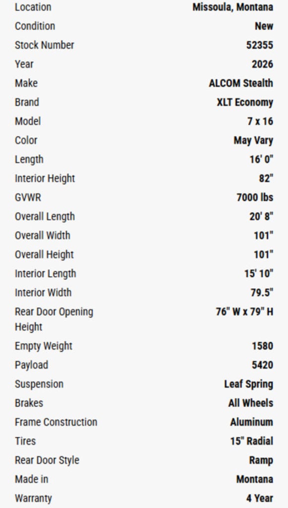 As the region’s longest-running and largest aluminum trailer outlet, Western States Trailer Missoula is proud to introduce the Montana-made XLT Pro by Stealth—our most budget-conscious aluminum trailer yet. Built on Stealth’s proven platform, the new XLT Pro model delivers essential features at a more affordable price point. Standard equipment includes a reduced box height, compact V-nose design, slimline lighting, and black mod wheels—practical upgrades that offer real value.