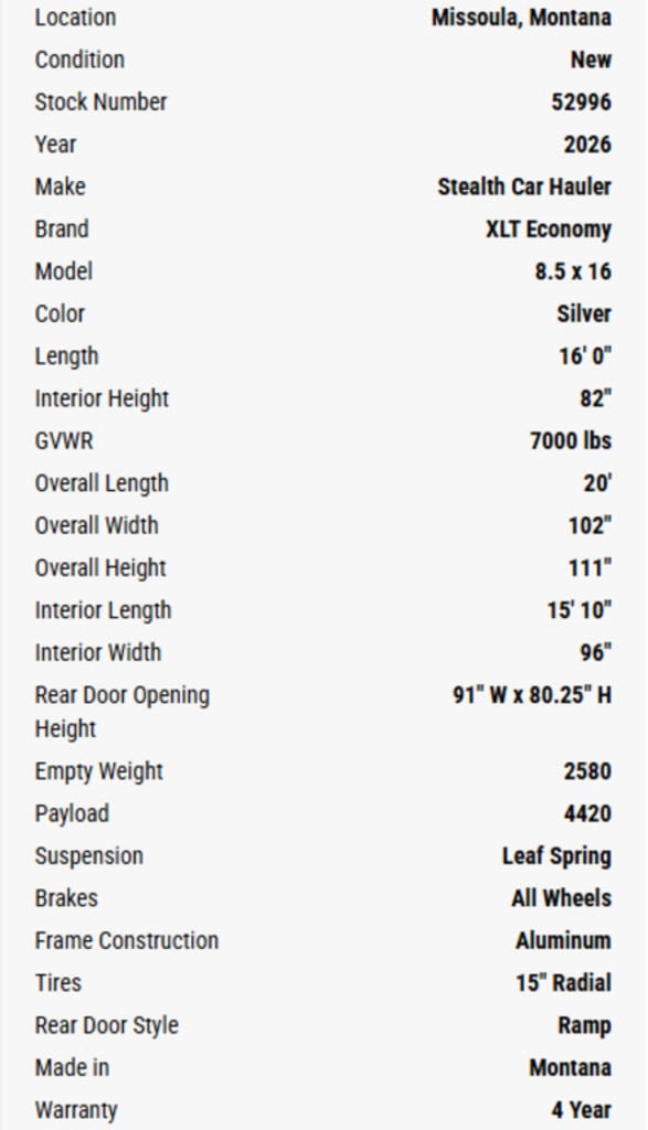 As the region’s longest-running and largest aluminum trailer outlet, Western States Trailer Missoula is proud to introduce the Montana-made XLT Pro by Stealth—our most budget-conscious aluminum trailer yet. Built on Stealth’s proven platform, the new XLT Pro model delivers essential features at a more affordable price point. Standard equipment includes a reduced box height, compact V-nose design, slimline lighting, and black mod wheels—practical upgrades that offer real value.